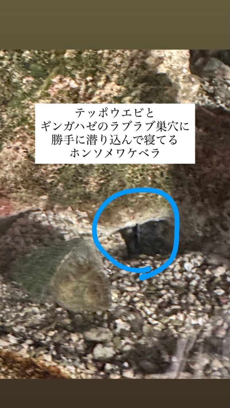 共生ハゼの巣穴に、他のハゼ類(クロユリハゼとかハタタテハゼとか)が居候するのは聞いたことがあったし、その姿を見たいから、いつかお迎えしたいなあ、でもマルチカラーが気が強いからいじめるかもしれんしなぁ。と二の足を踏んでいた。