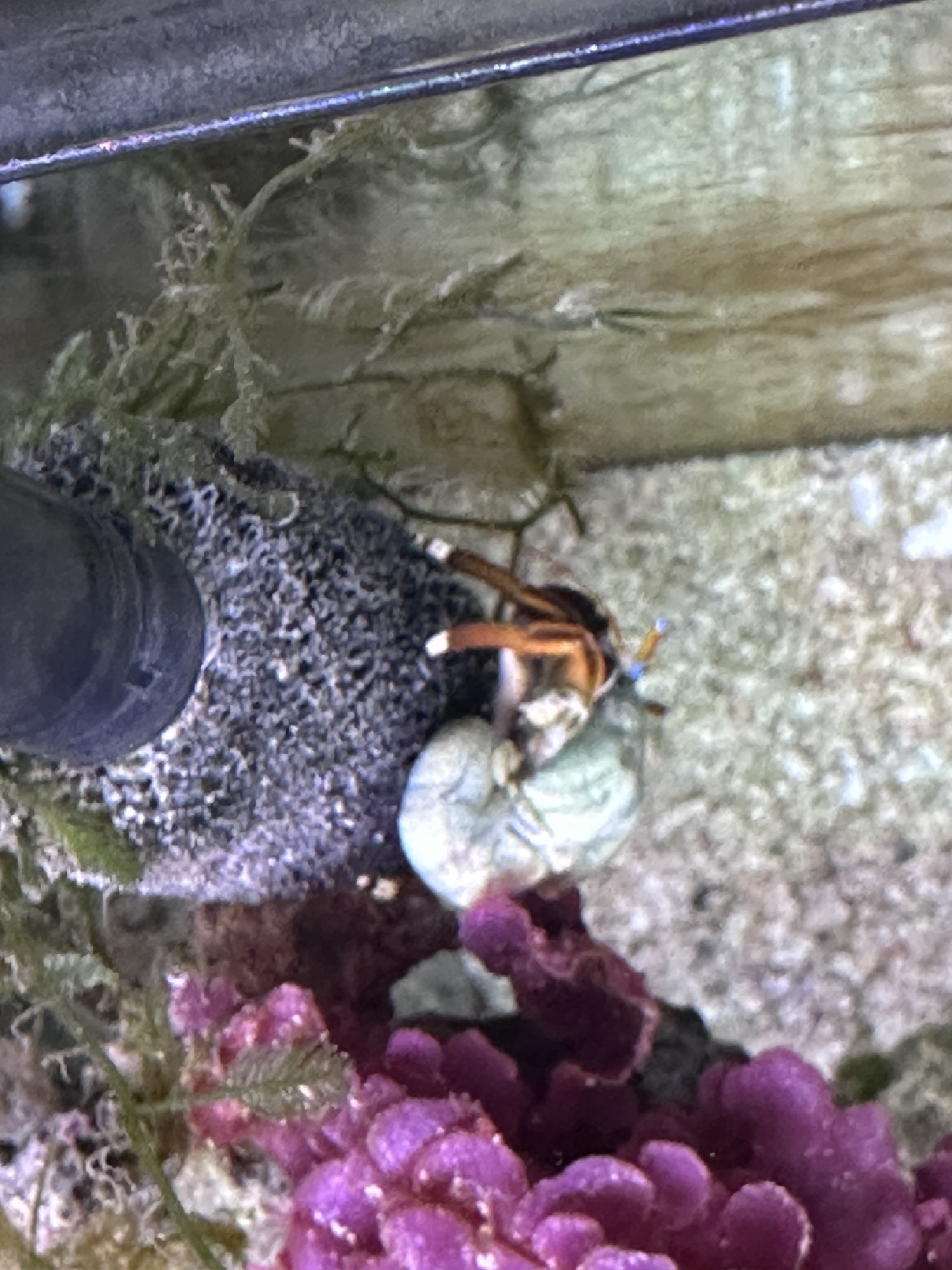 なぜか今朝殻を脱いで裸だったスベスベサンゴヤドカリ。(脱皮は2日前にしたばかりなのでなんで脱いだのか謎)